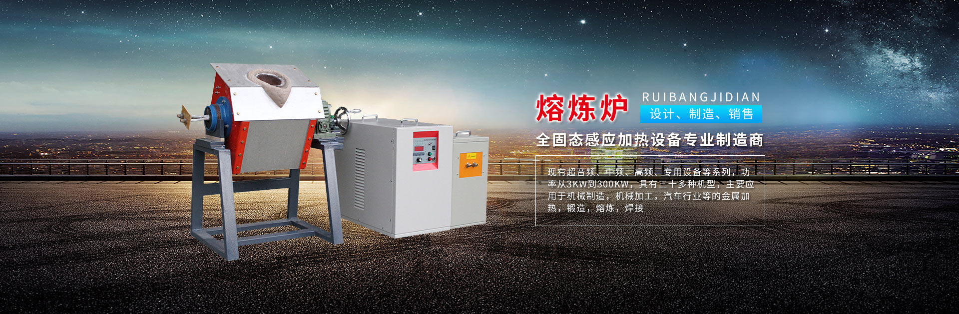 江陰市瑞邦機電有限公司 致力于全固態感應加熱設備的研發、生產和銷售,現有超音頻、中頻、高頻、專用設備等系列,功率從3KW到300KW,具有三十多種機型,主要應用于機械制造,機械加工,汽車行業等的金屬加熱,鍛造,熔煉,焊接。廣泛用于鉆頭熱軋,金屬釬焊接,熱配合,高頻感應淬火,退火,高頻熱處理,釬頭焊接, 固化粘接, 熱鐓。主要電氣部件均采用知名廠家晶體管集成塊及德國原裝的大功率高速開關管IGBT組成...